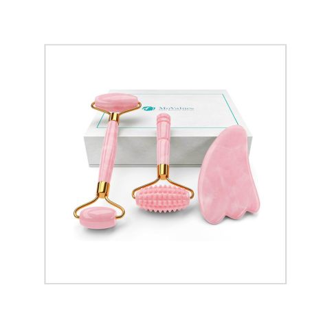 Home Beauty & Personal Care 4-in-1 Jade Roller and Gua Sha Set. Rose Quartz Roller