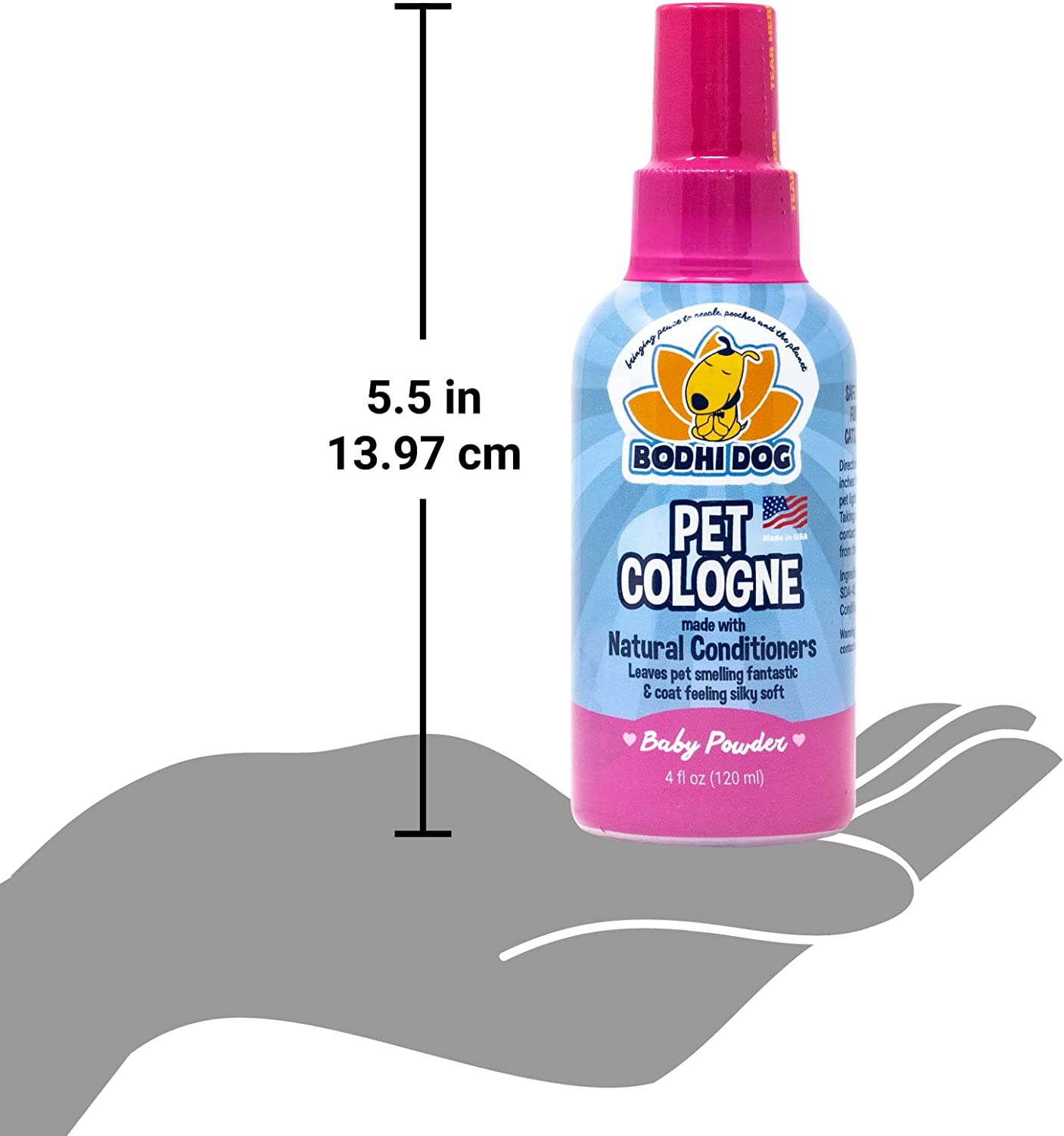 Our natural pet freshener spray makes a great gift for a pet lover, it immediately controls odor and keeps pets smelling great and soft to the touch. There is no rinsing or washing required, simply spritz from the convenient travel size bottle and go! To use, hold the bottle 6 to 8 inches from the coat and spritz your pet lightly using short bursts. Taking care not to come in contact with the pet’s eyes, spritz from the back of the head to tail. For best results, brush afterward to evenly disperse the product through the coat. We are a small family-owned business committed to your full satisfaction. We are committed to the planet as much as we are to you and your pet’s happiness. Our pet cologne and packaging are made using the most socially responsible and ecologically friendly methods available right here in the USA. Bodhi dog products are the CONSCIENTIOUS AND SOCIALLY RESPONSIBLE PET OWNER’S CHOICE! MADE IN THE USA.