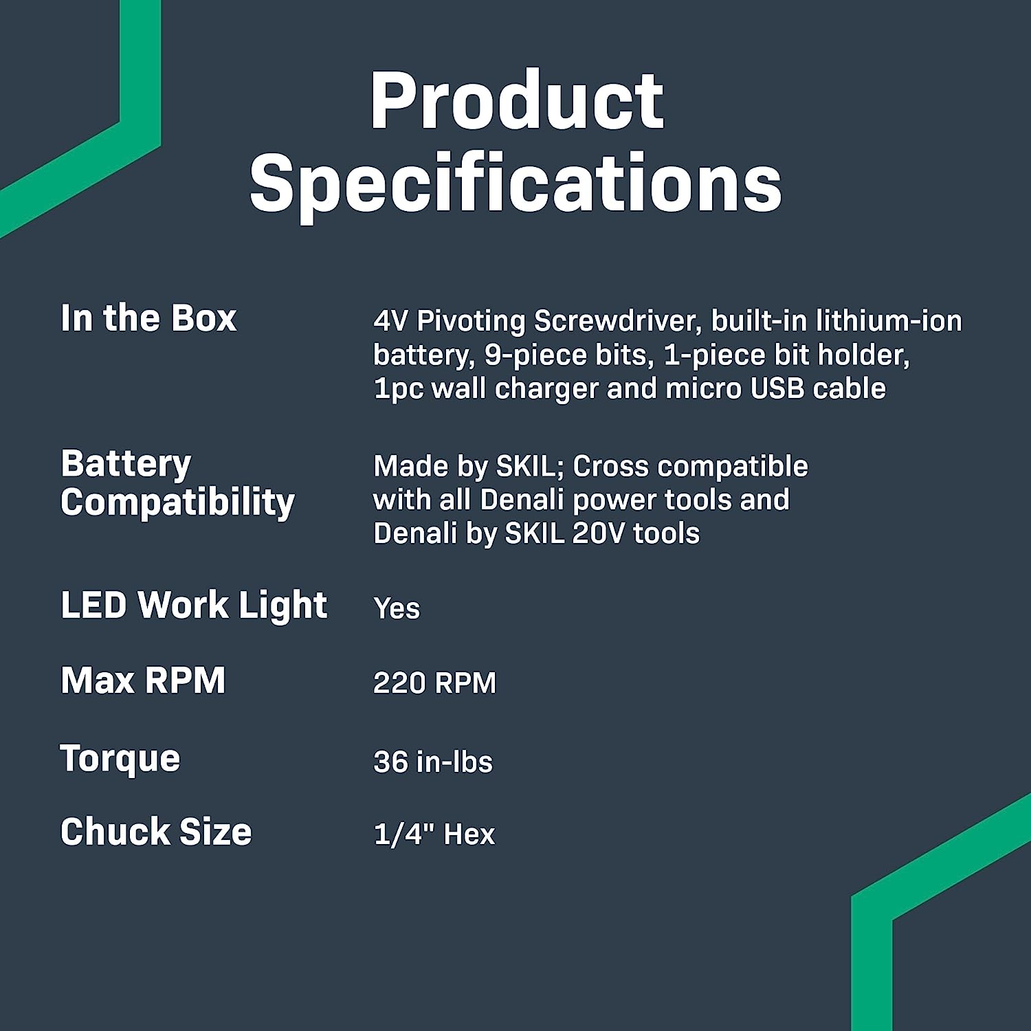 Denali by SKIL 4V Cordless Pivoting Screwdriver with10-Piece Bit Set