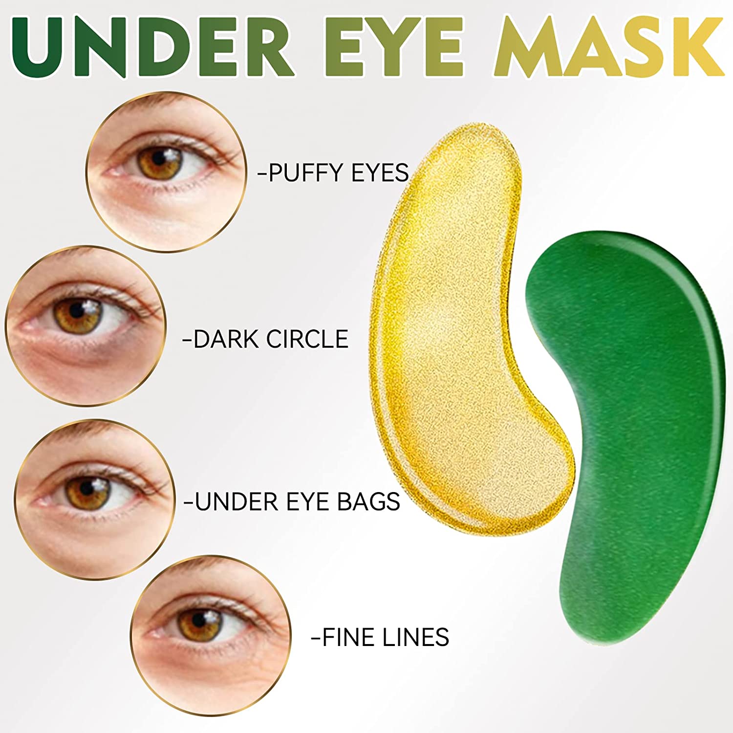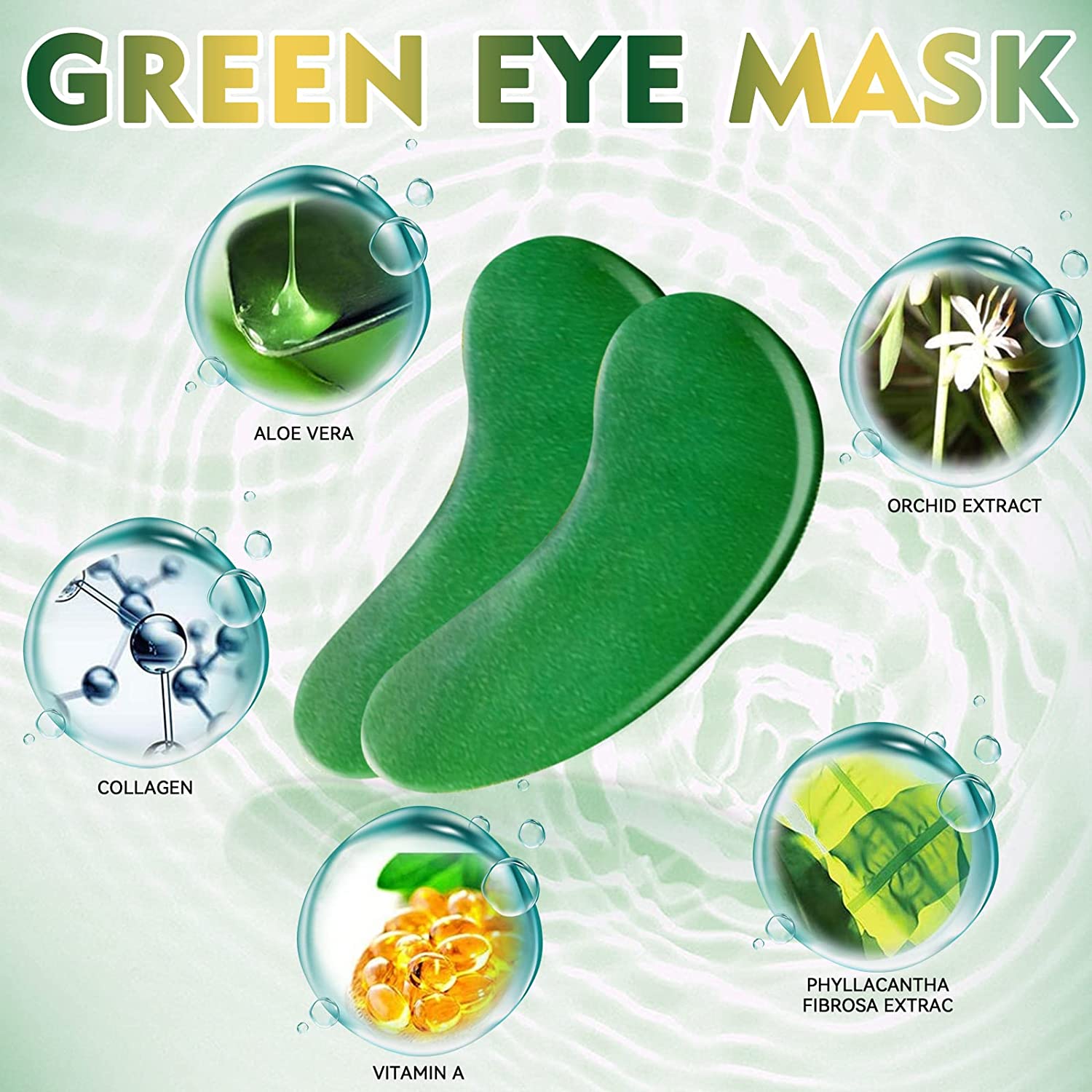 Green eye mask ingredients: water, glycerin, glucomannan, carrageenan, hydrolyzed collagen, propylene glycol, potassium chloride, hydrogenated castor oil, cuttlefish extract, mica powder, Xanthan gum, carrageenan, hyaluronic acid, hydrogenated castor oil, DMDM hydantoin hydroxyphenyl methyl ester, chlorophenylene glycol, essence.