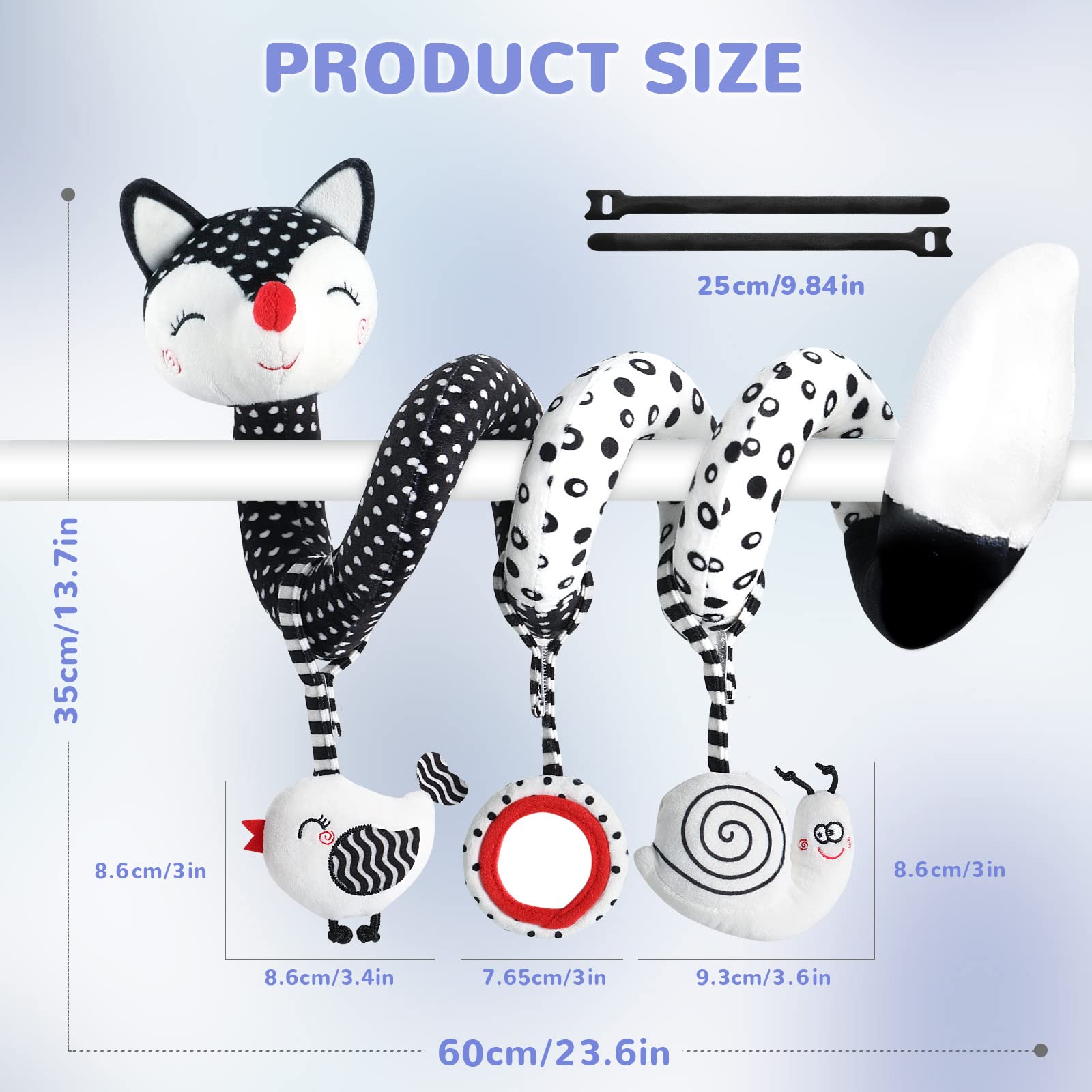 The 3 soft plush toys can be rearranged and detached individually. You can easily hang them on the car seat, baby carrier, stroller bar, crib, shopping carts, bassinet, or play gym so that the baby can play with them at all times and anywhere. The interesting toy will encourage babies to explore.