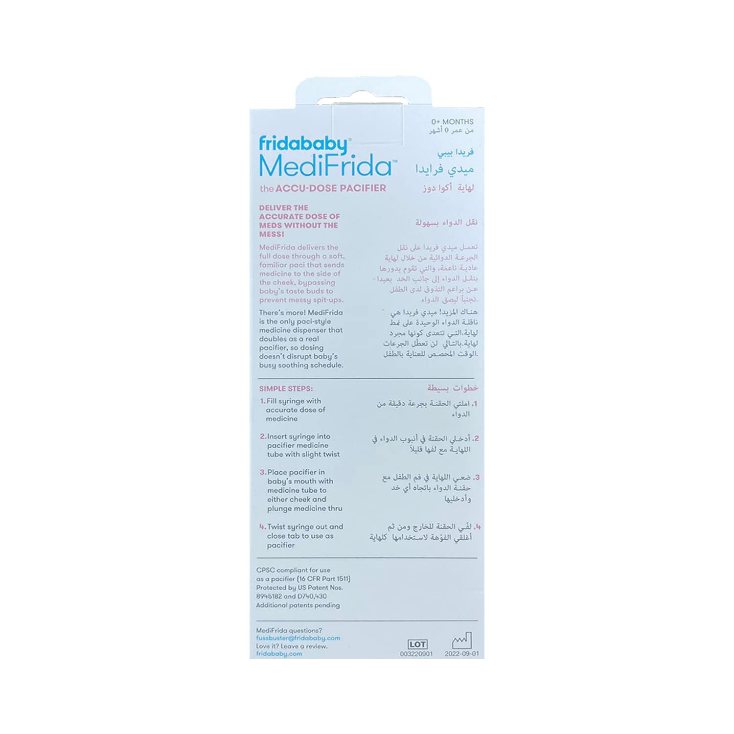 fridababy delivers the full dose through a soft, familiar pace that sends medicine to the side of the cheek, as recommended by doctors, bypassing baby’s taste buds to prevent spit-ups so baby swallows full dose.fridababy is the only pace-style baby medicine dispenser that doubles as a real pacifier, so dosing doesn’t disrupt baby’s busy soothing schedule.