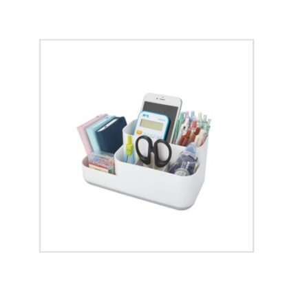 • MULTI-FUNCTIONAL: This cute modern organizer box can hold all your pens, pencils, remote controls, glasses, sticky notes, makeups, cards, etc. You can also use this desktop caddy for organization of your end table, nightstand, vanity table and school desk