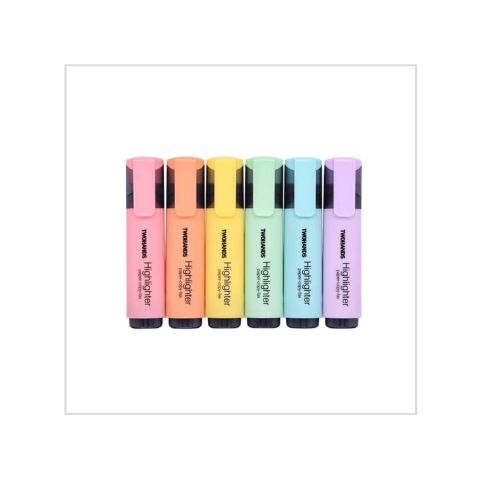 • Pastel highlighters set featuring two markers in each of the following six trendy colors: Orange, Yellow, Green, Blue, Purple and Pink